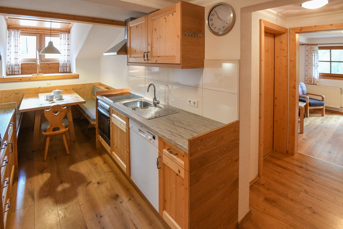 Als unsere größte Wohnung (70m²) überzeugt das Schideck vor allem durch seine Geräumigkeit. Egal ob Küche, Balkon, die zwei Badezimmer, die beiden Schlafräume oder der zusätzliche Wohn-/Schlafraum – alles bietet genug Platz für die ganze Familie. Das erhöhte Kinderbett mit Aussicht auf den namensgebden Berg ist ein Highlight für die Kleinen.